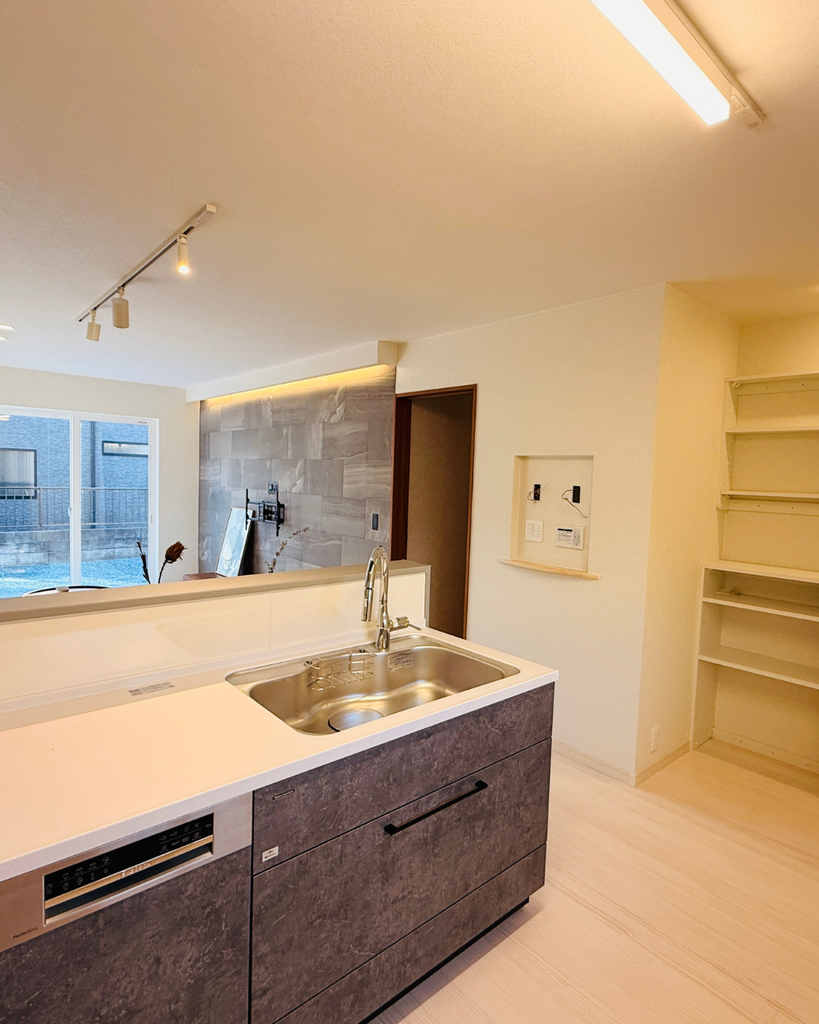 ・リビング全体を見渡せるオープンタイプのキッチンで、家族との会話が自然に弾む